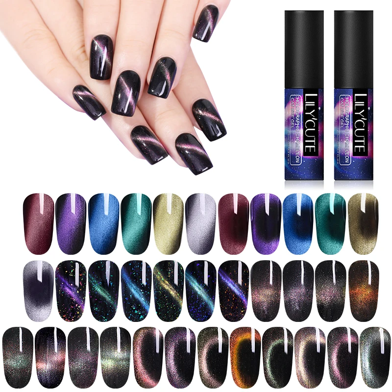 LILYCUTE 5ml 9D Auroras Cat Eye UV Gel Polish Chameleon Magnetic Soak Off Nail Art Gel Lacquer Nail Art DIY Design