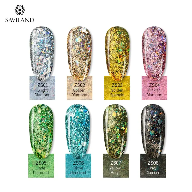 SAVILAND Super Glitter Diamond Polygel Builder Gel Nail Polish Soak-Off UV Gel Varnish Poly Gel Extension Nail Art Lacquer Tool